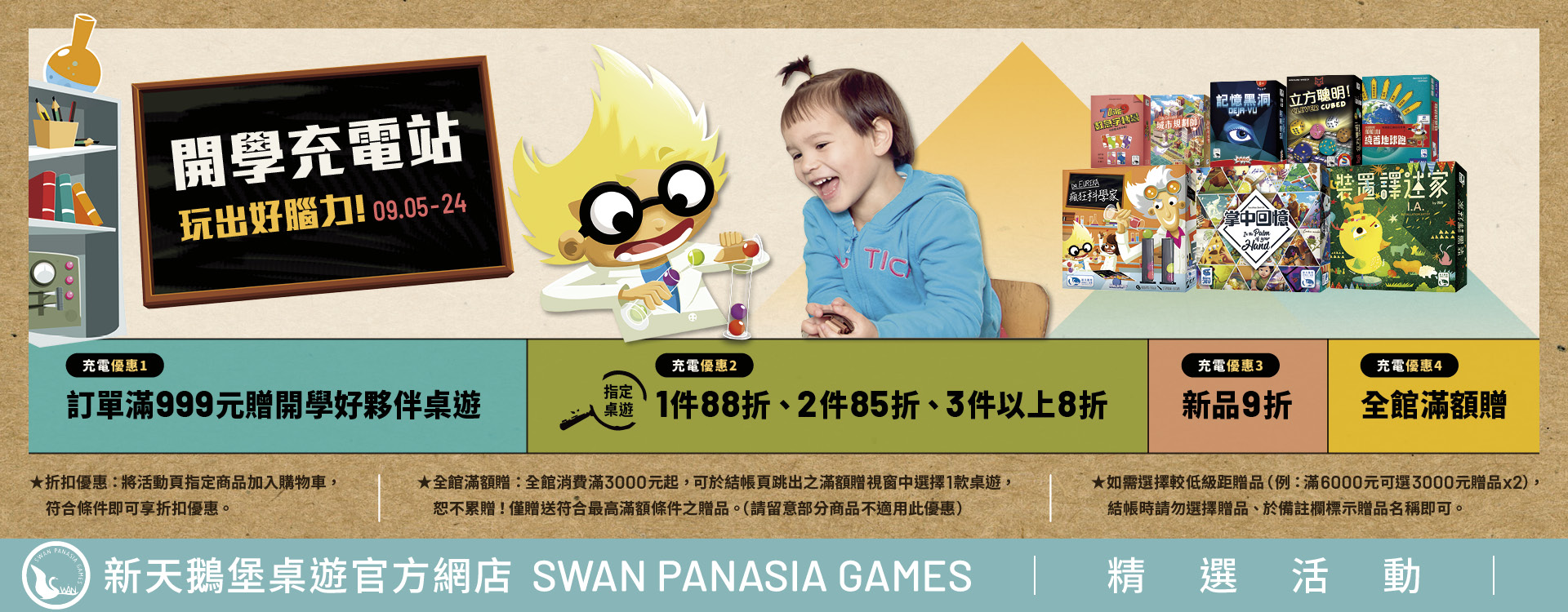 充電優惠1⚡訂單滿999元贈開學好夥伴桌遊