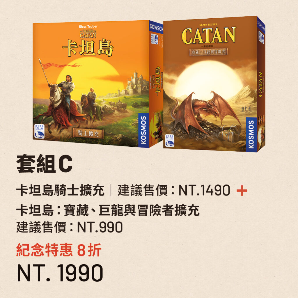 🌾套組D:買 卡坦島騎士擴充 + 卡坦島:寶藏、巨龍與冒險者擴充