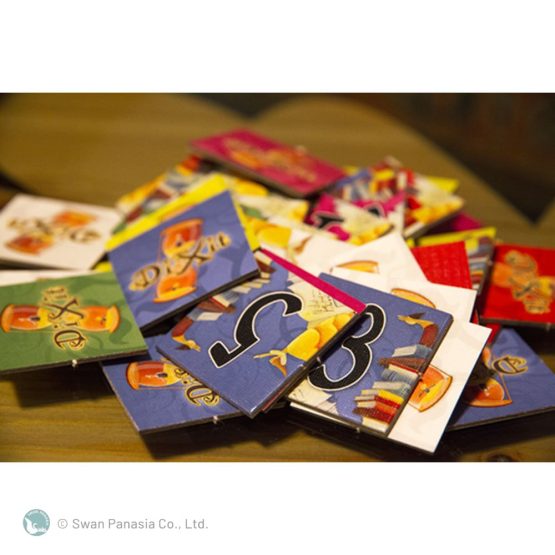 84張牌、1張嵌於盒內的計分板、6隻木製兔子、36個投票標記物、1份遊戲規則。