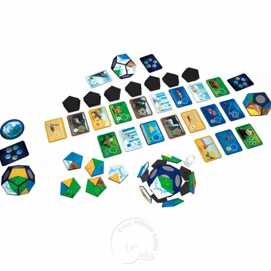 一場遊戲包含12輪,運用策略將地形圖板放到自己的星球上, 以組成一個適合動物繁衍的好環境。