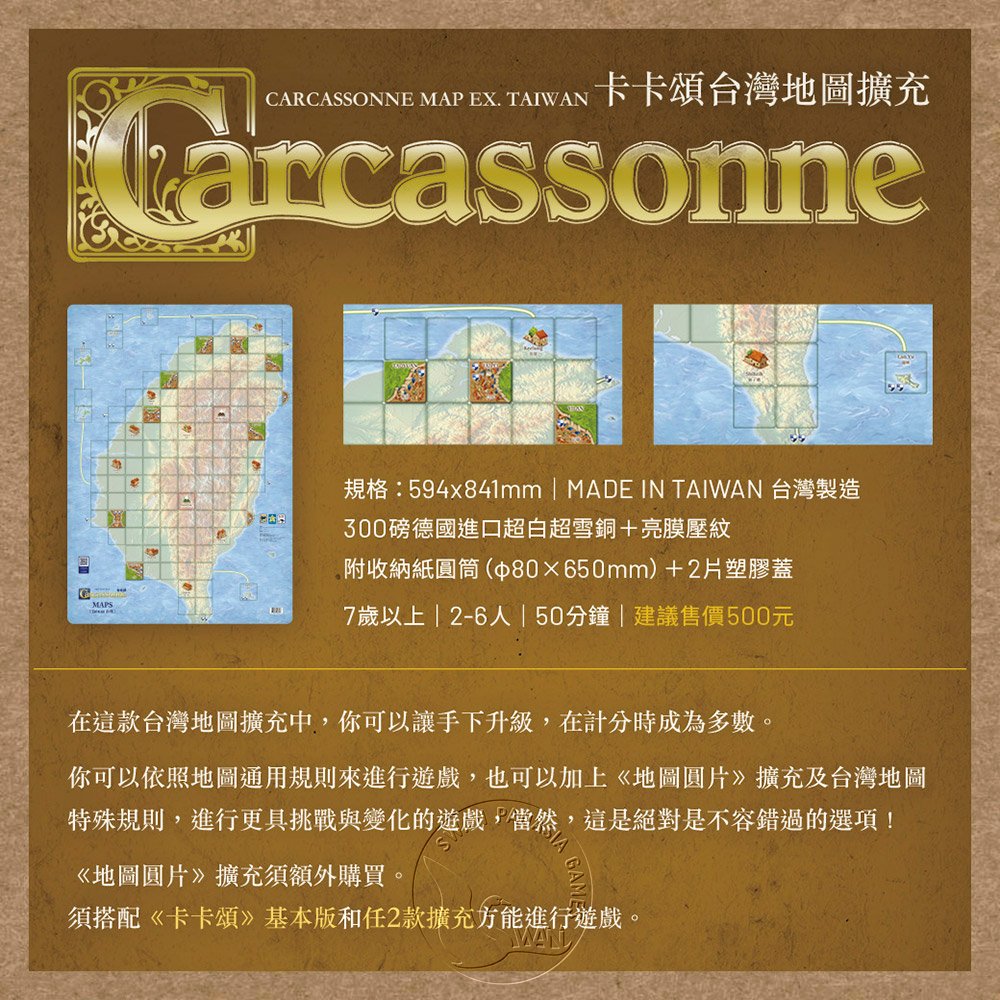 在這重要的2021年,出版社應新天鵝堡桌遊懇切的邀請,為台灣粉絲們準備了一份特別的禮物——《卡卡頌台灣地圖擴充》,回饋本地粉絲20年來的熱情支持。