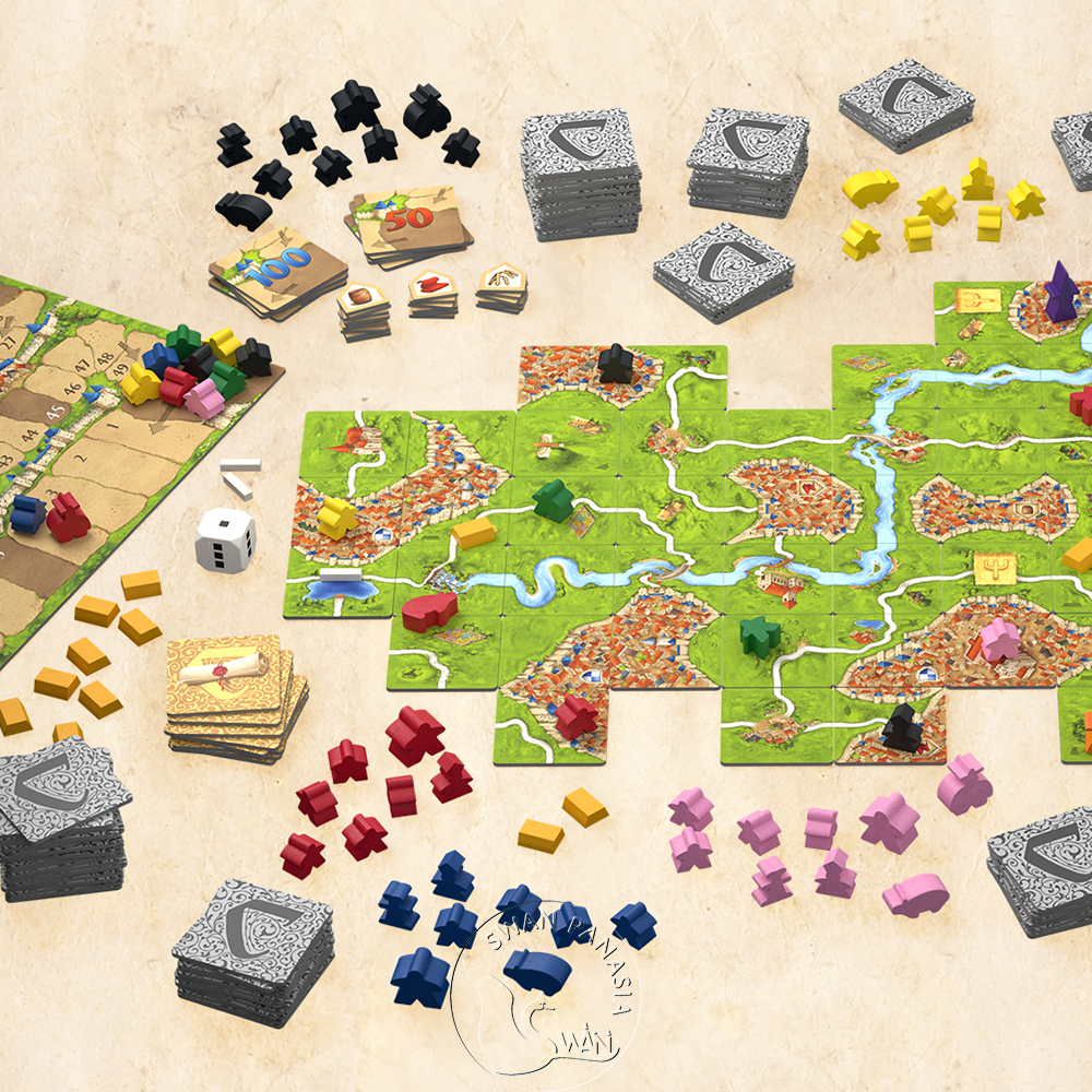 卡卡頌3.0與2.0兩者板塊美術設計相同可兼容遊玩;內含河流擴充與修道院長擴充,讓你玩樂更盡興!