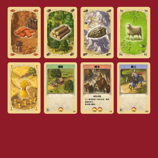 這是款節奏迅速的紙牌遊戲,目標是將資源善用在建造村莊、城市、城市擴建、騎士和道路,來獲得最佳的分數積累。