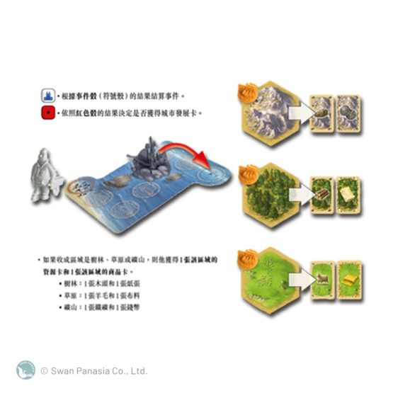 這些卡片只能靠著將城市建在山、森林或牧場旁才能獲得。