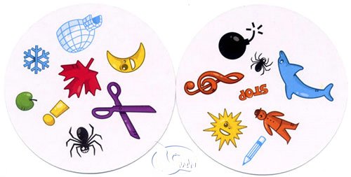 只要發現並叫出你和對手的紙牌上相同的圖案名稱,即可獲得分數~