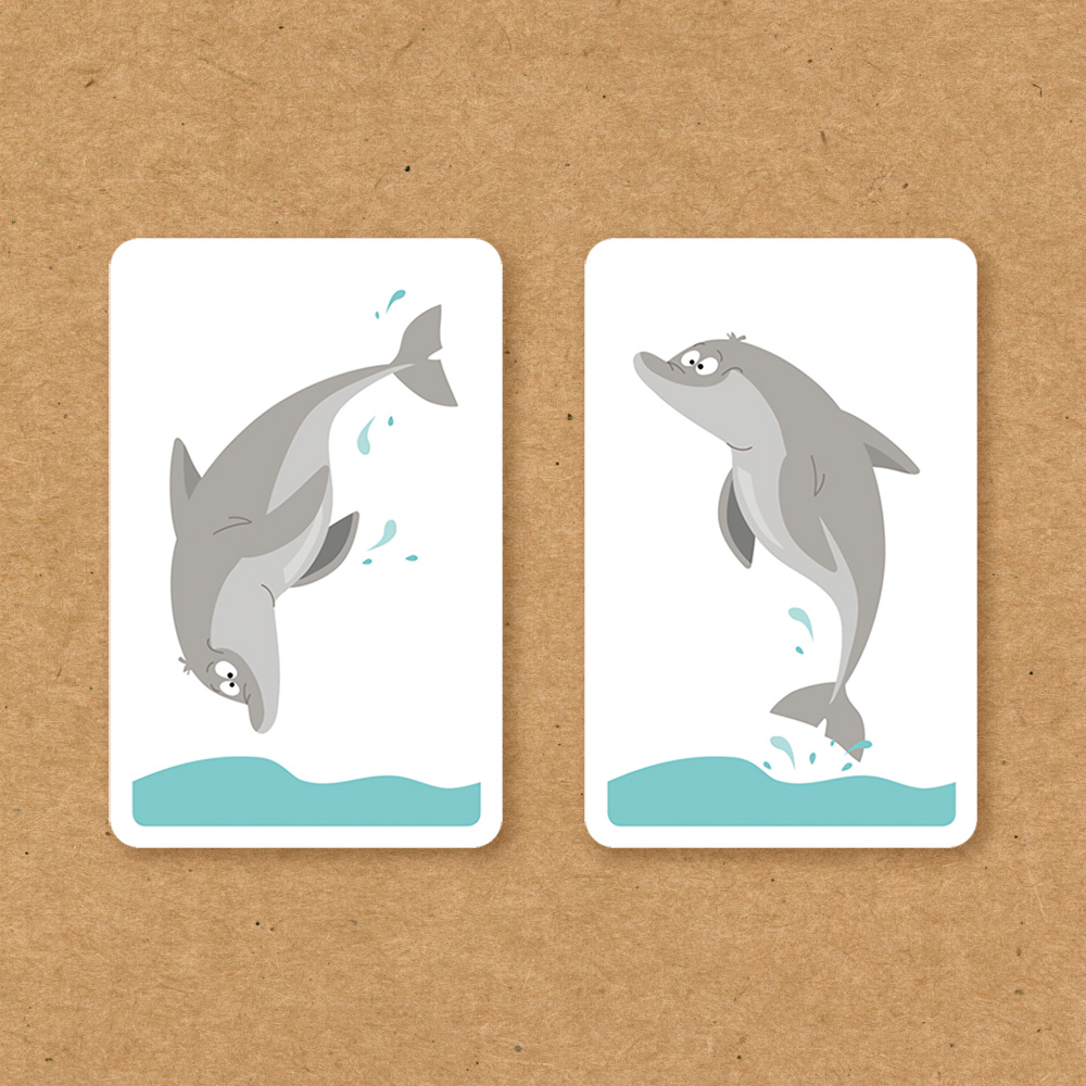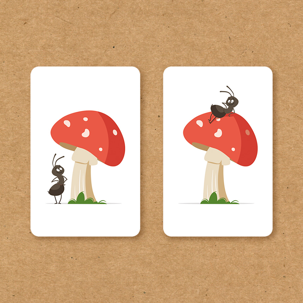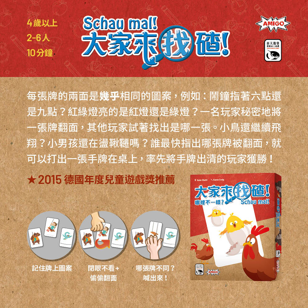 每張牌的正反面都有小地方不同,一名玩家偷偷將桌面上的某張牌翻面,其他人要盡快找出有改變的地方究竟在哪?