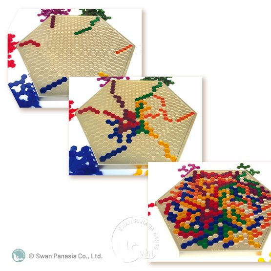 最多可以供六人同時進行遊戲,要如何揣測對手的下一步,把自己18片形狀不同的拼圖放置在板子上,以獲得最後勝利呢?