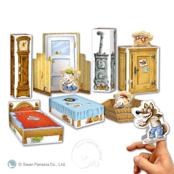 扮演小羊的玩家快速將自己的小羊,藏在桌面中央任何一件傢俱的下面或裡面。