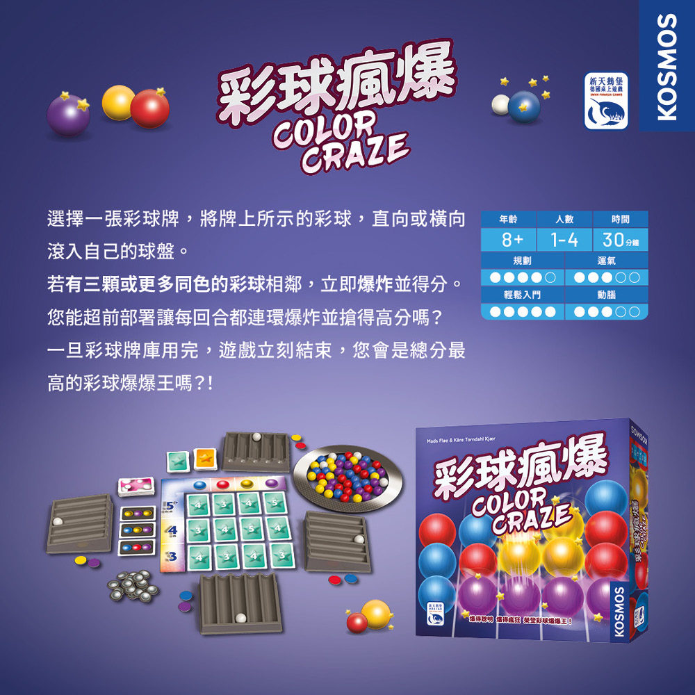 一旦彩球牌庫用完,遊戲立刻結束,您會是總分最高的彩球爆爆王嗎?!