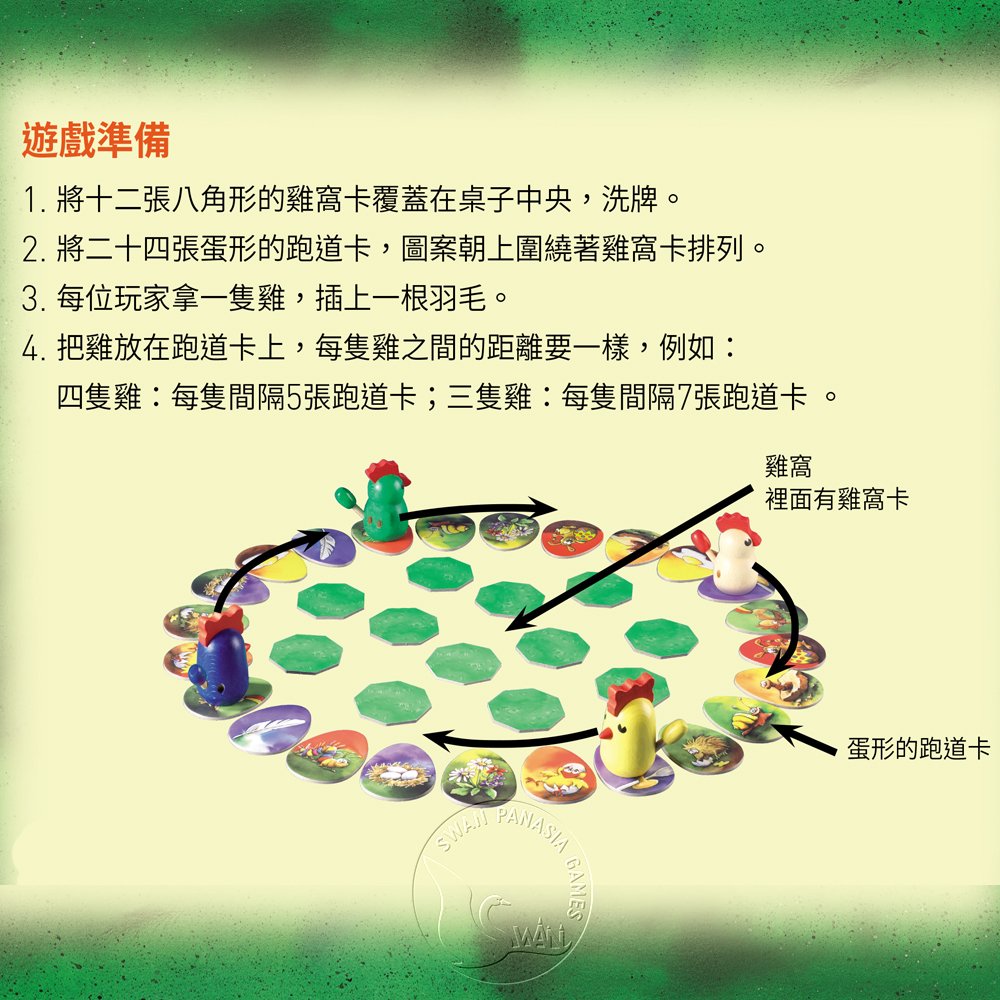 獲得所有羽毛的雞,就是今天的冠軍。想要贏得比賽必須對雞窩裡的地形很熟悉,那些瞎眼雞或健忘雞,最後只能光著屁股站在那裡,呆若木雞。