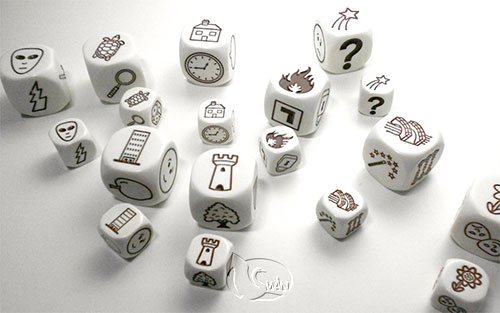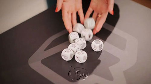 投擲9顆骰子,以「很久很久以前….」來開始故事,並依9顆骰子上的圖案來編織故事。