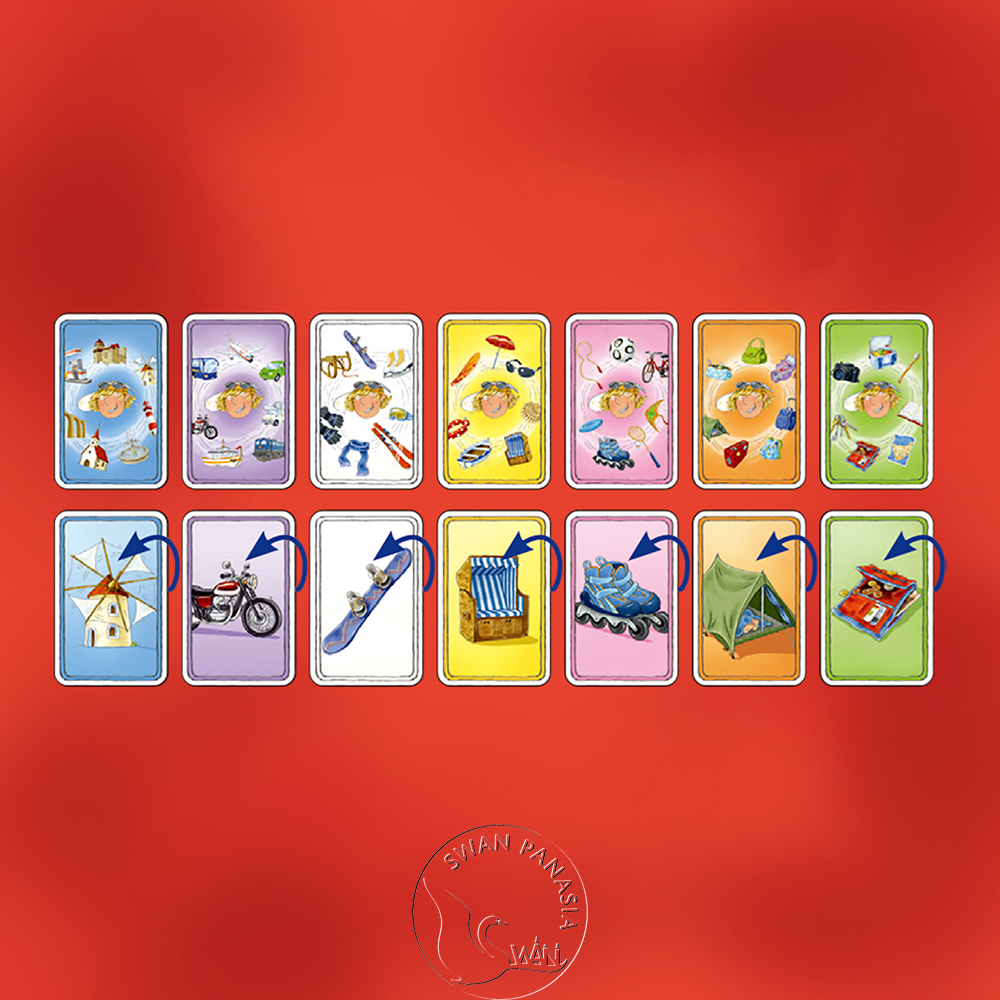 (紅、橘、黃、藍、紫、白色各7張、綠色僅6張)