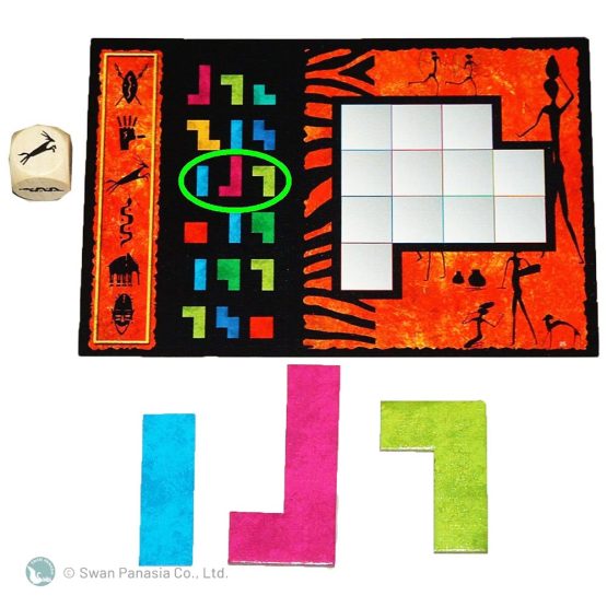 遊戲進行方式:每位玩家拿取一套共12片的幾何板塊,每片形狀不同的板塊都由多個大小相同的正方形所組成。回合開始時,每位玩家拿取一張新的拼圖板,一位玩家擲骰決定必須用哪些板塊填滿拼圖板上的空格,在時限內完成的人大喊「烏邦果」,接著從袋子裡隨機拿取一顆寶石。最快完成的人可以額外獲得一顆藍寶石,次快完成的人可以額外獲得一顆黃寶石。不同顏色寶石帶來不同分數,九回合後,得分最高的玩家獲勝。