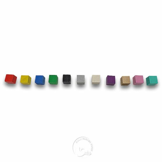 本商品內含11個方塊(紅、黃、藍、綠、黑、灰、木、白、粉、紫、土耳其藍色方塊各1個)