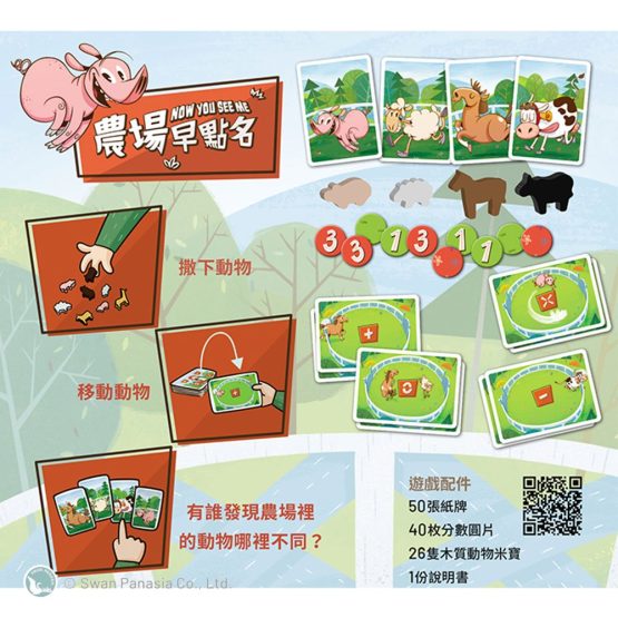 當你閉上雙眼時,有些動物悄悄移動,可能跑進或跑出農場,可能自己換了位置或和其他動物交換位置,你夠眼尖能看出到底發生了什麼事嗎?