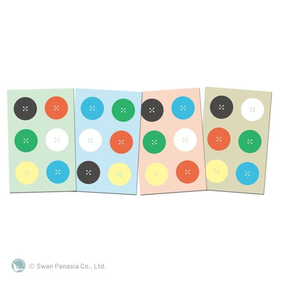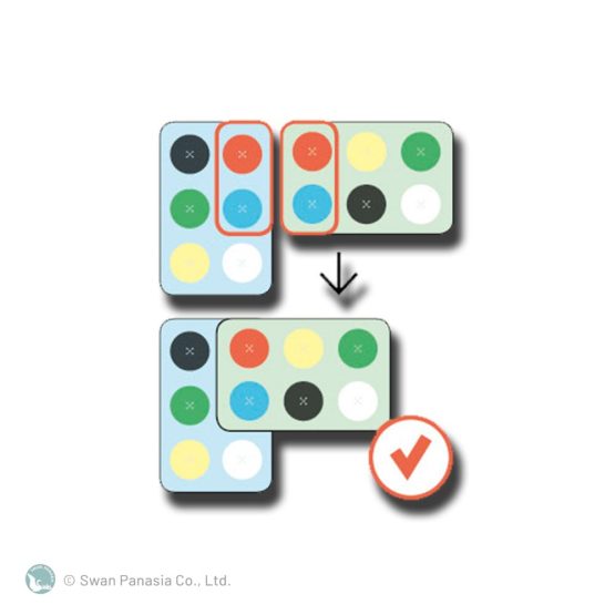 ■玩家要儘快將自己的紙牌上至少兩個紐扣疊合在桌上既有的同色紐扣上,