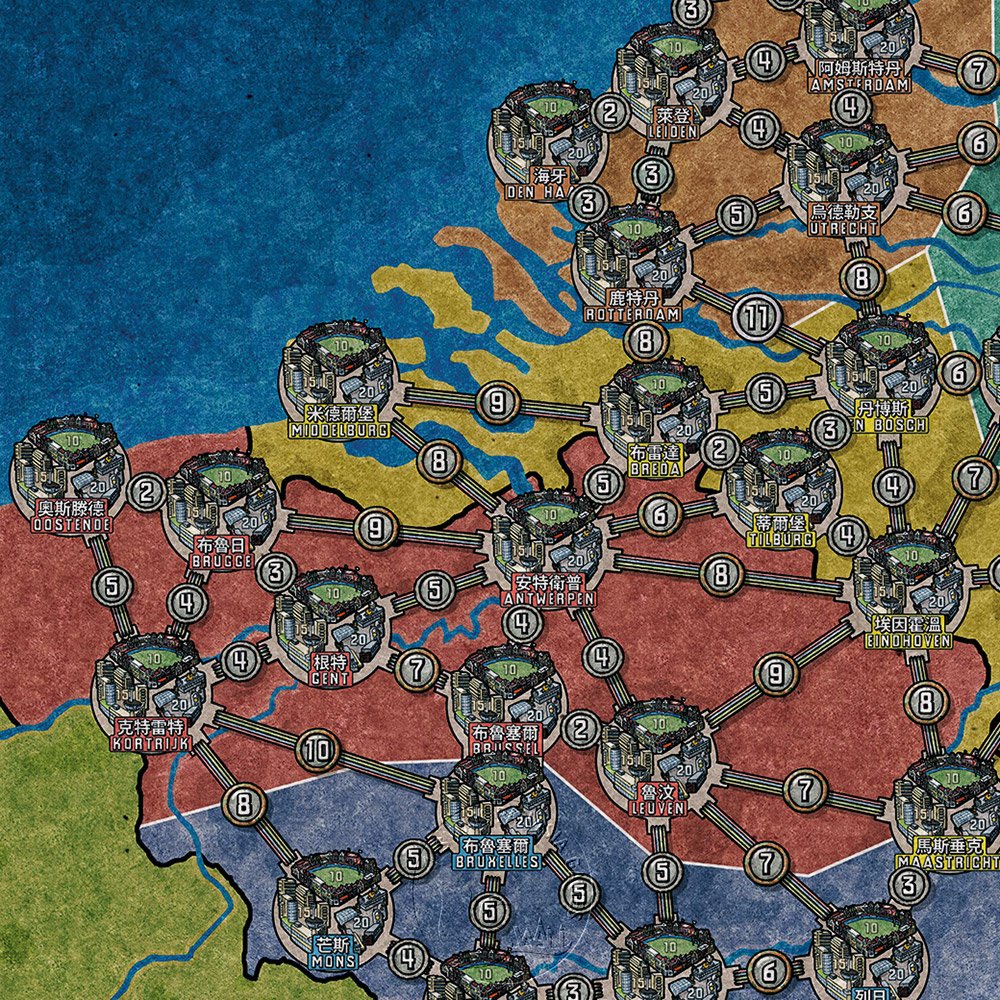 由於城市間的距離接近,這張地圖的平均線路費用比較低廉,玩家建造變電所的速度也比較快,遊戲時間會因此縮短。