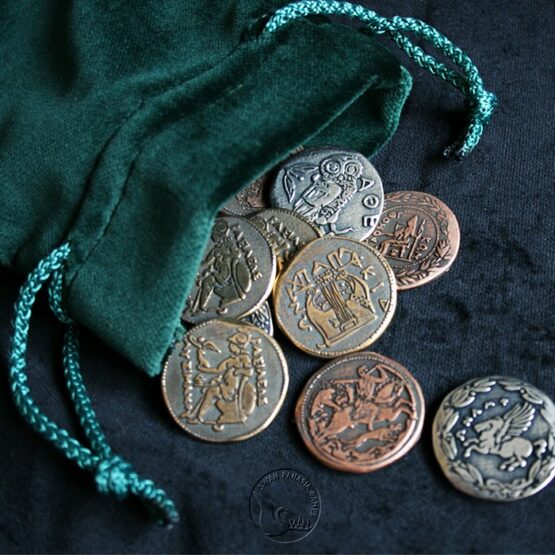 可單片收藏或遊戲中使用(例:起始玩家)、亦可組成套幣運用於遊戲計數。