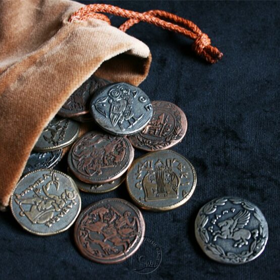 可單片收藏或遊戲中使用(例:起始玩家)、亦可組成套幣運用於遊戲計數。