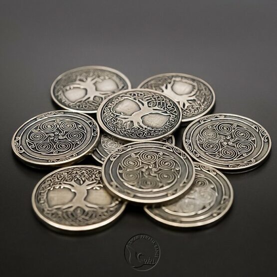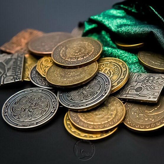 可單片收藏或遊戲中使用(例:起始玩家)、亦可組成套幣運用於遊戲計數。