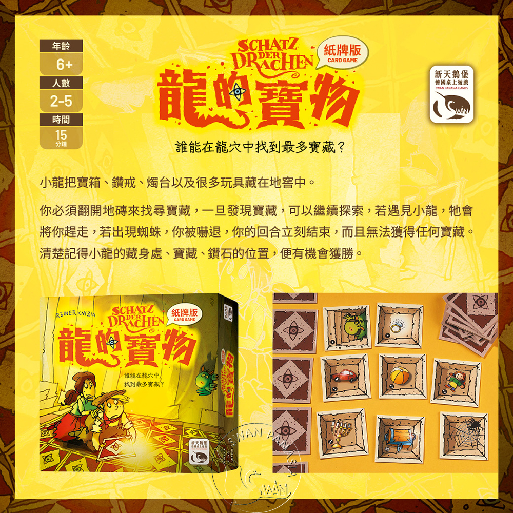 但若小龍出現便會將你趕走、若蜘蛛出現便會把你嚇退,並且你的回合立即結束,無法獲得任何寶藏。