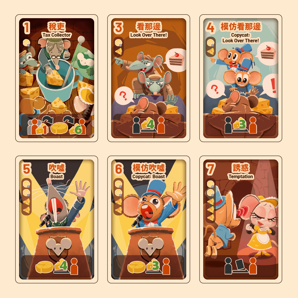 猜中紙牌編號來獲得起司,再運用紙牌行動獲得更多起司,