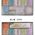 同系列的各種尺寸,皆可堆疊排放,兩盒間有卡榫,可契合不易傾倒,放在遊戲盒內也可節省空間。