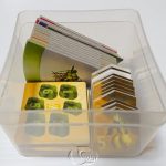 同系列的各種尺寸,皆可堆疊排放,兩盒間有卡榫,可契合不易傾倒,放在遊戲盒內也可節省空間。