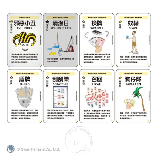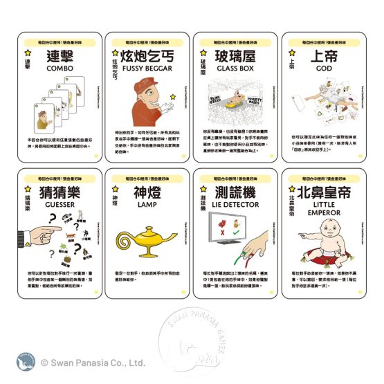 每場遊戲可從中選擇/隨機抽取來替換基本版的特別牌,保持14張金星好牌和3張黑星壞牌,讓遊戲增加變化、更加刺激!